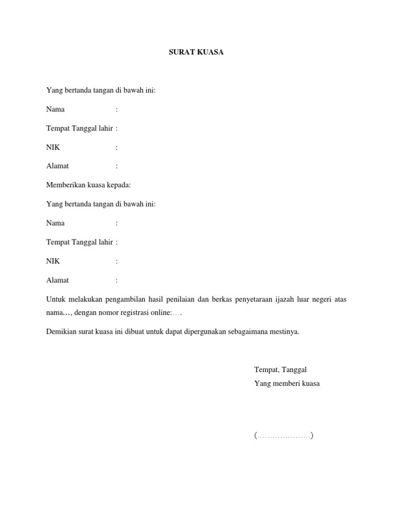 The collection that consisting of chosen picture and the best … 10 contoh dan format surat kuasa dalam bentuk file word.docx. Mungkin disebabkan karena anda sudah ada di luar kota untuk bekerja atau keperluan lain sebagainya. Aug 21, 2021 · contoh surat kuasa. Untuk surat kuasa perseorangan ini, kamu tidak perlu menggunakan kop surat resmi.